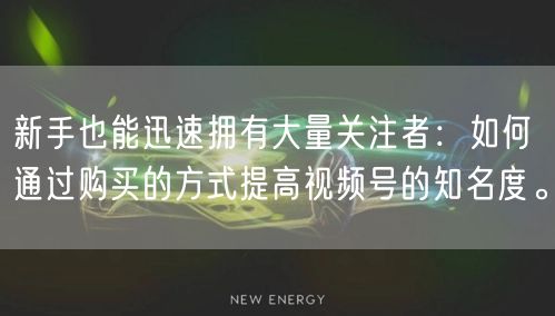 在当今社交媒体盛行的时代,视频号已成为个人与品牌展示才华、推广产品的重要平台。然而,对于新手而言,从零开始积累关注者往往是一项艰巨的任务。幸运的是,通过一些策略性的购买行为,新手也能迅速提升视频号的知名度,吸引大量关注者。本文将深入探讨如何通过购买的方式有效提高视频号的关注度。